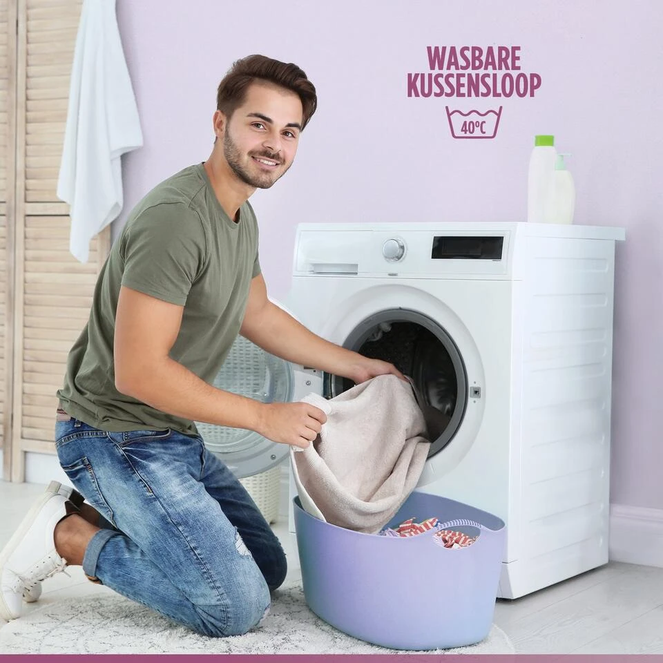 De kussenhoes is afneembaar en wasbaar op 40 °C. Dit kussen is OEKO-TEX® 100 gecertificeerd.