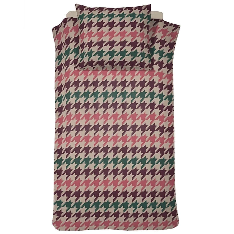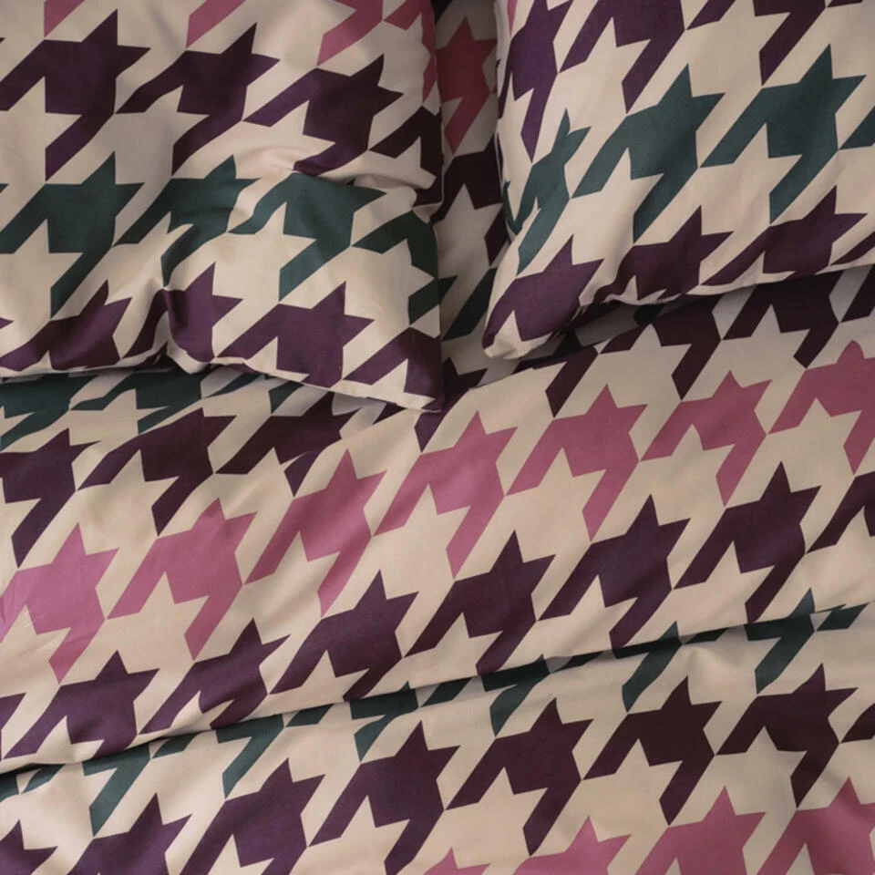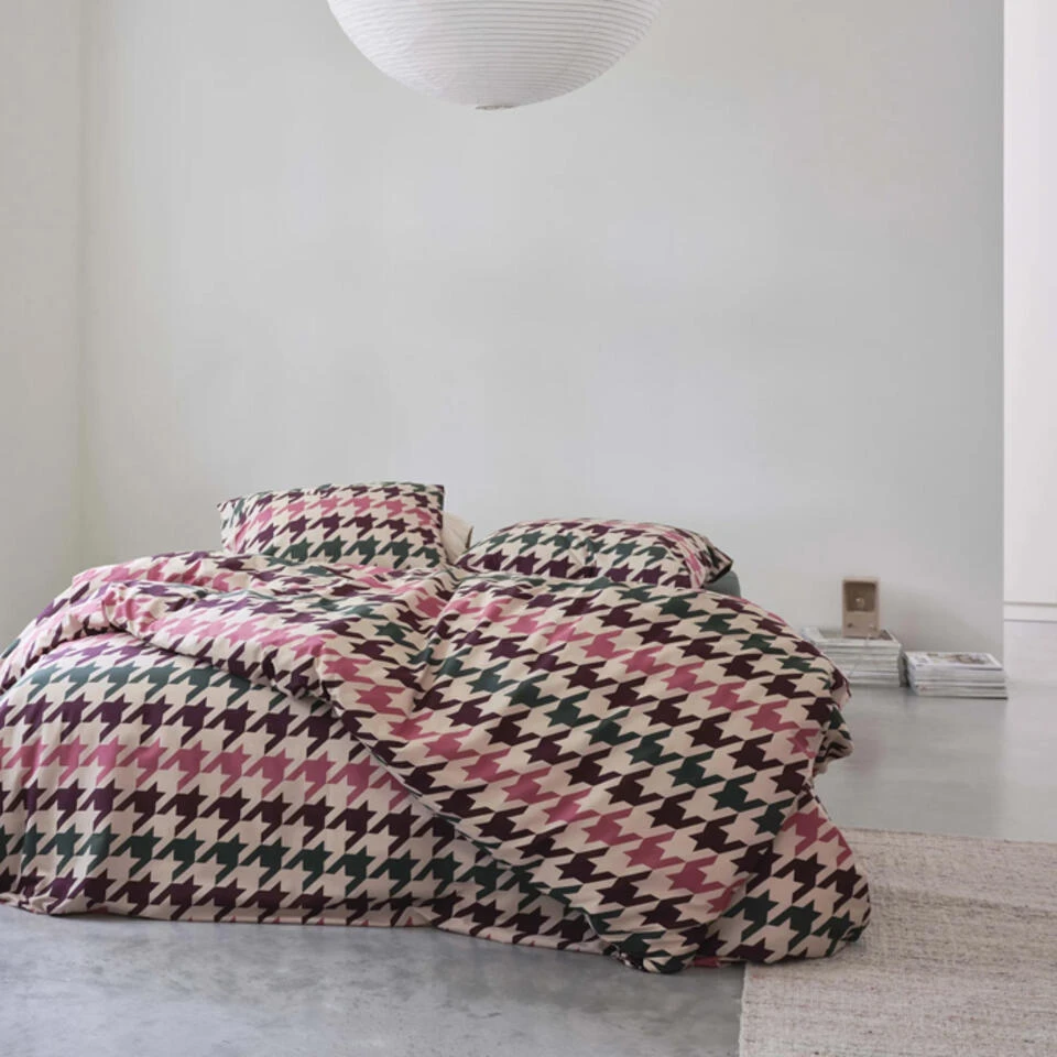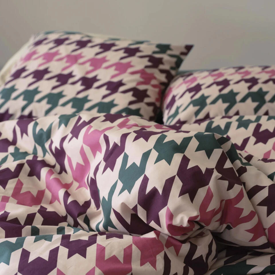 Voeg een vleugje klassieke elegantie toe aan je slaapkamer met het Cinderella Festival dekbedovertrek. Dit bijzondere ontwerp valt op door zijn stijlvolle pied-de-poule dessin, een tijdloos motief dat bekendstaat om zijn verfijnde en chique uitstraling. De combinatie van dit klassieke patroon met moderne groen-, roze- en bordeauxtinten zorgt voor een verrassend speels en sfeervol geheel.