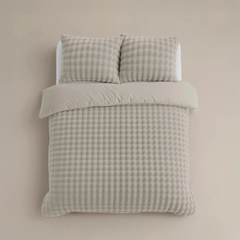 Heerlijk zacht dekbedovertrek van pompom flanel fleece met luxe uitstraling. Warm, ademend, anti-allergisch en strijkvrij – ideaal voor koude nachten en een stijlvolle slaapkamer.