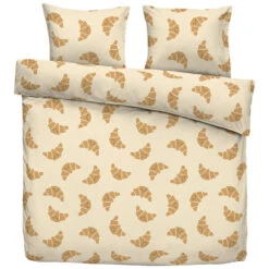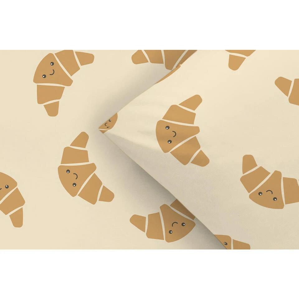 Croissant liefhebbers opgelet! Dekbedovertrek Jur is oranje van kleur met afdruk van smiley croissantjes en heeft een afmeting van 200×200/220 cm. Dit leuke dekbedovertrek is gemaakt van zacht katoen. Kruip jij er straks lekker onder?