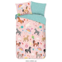 Dekbedovertrek “Horses” van Good Morning met regenbogen, in de kleur “Multi” is gemaakt van 100% Cotton. Deze kwaliteit is ademend, vocht absorberend en voelt zacht en soepel aan.