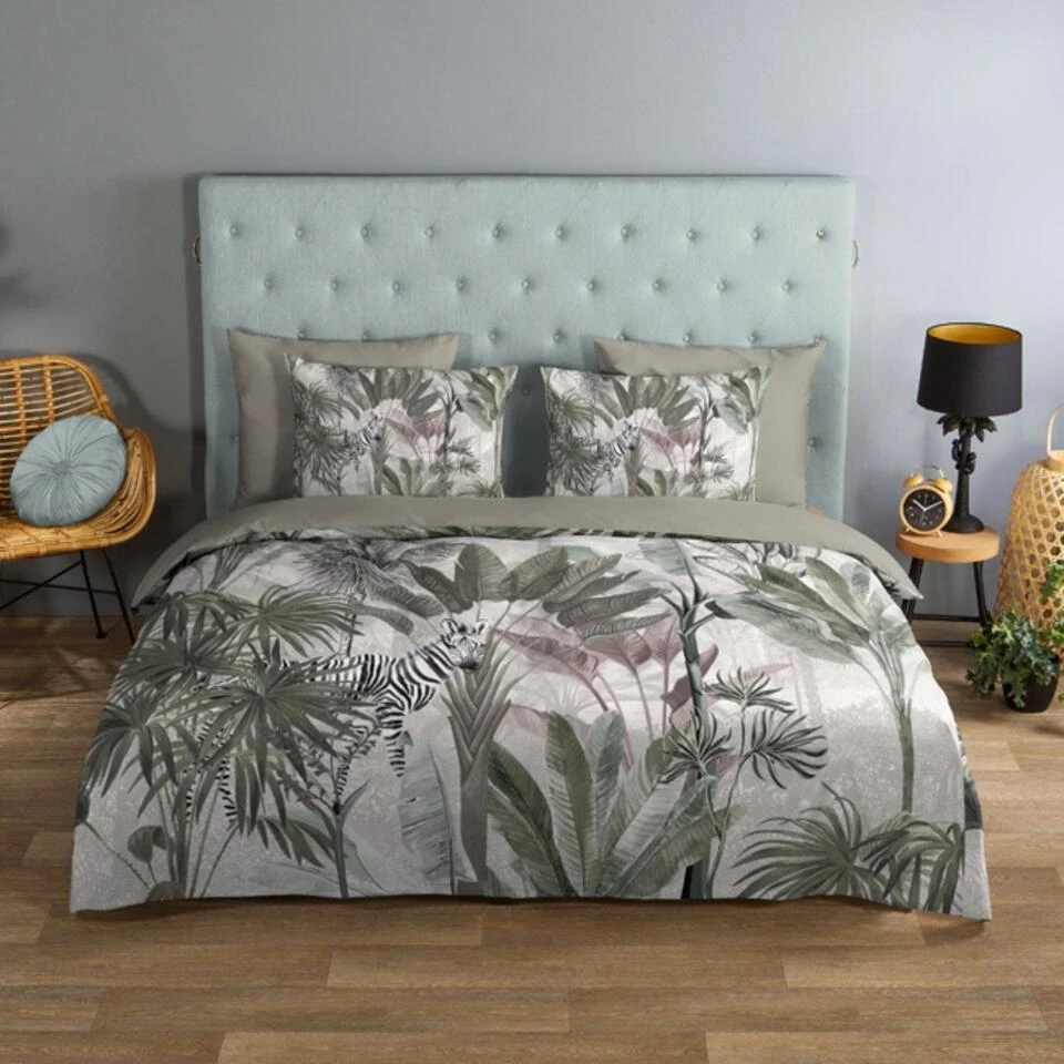 Dekbedovertrek “Irene” van Good Morning met jungle print, in de kleur “Groen” is gemaakt van 100% Cotton. Deze kwaliteit is ademend, vocht absorberend en voelt zacht en soepel aan.
