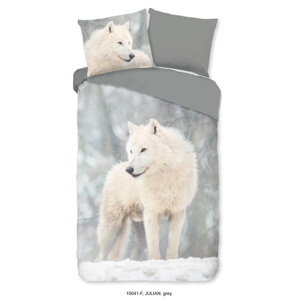 Dekbedovertrek “Julian” van Good Morning met poolwolf, in de kleur “Grijs” is gemaakt van 100% geruwde 100% Cotton/ Flannel. Deze warme, zachte stof is zeer geschikt voor de wintermaanden, ademend en vocht absorberend.