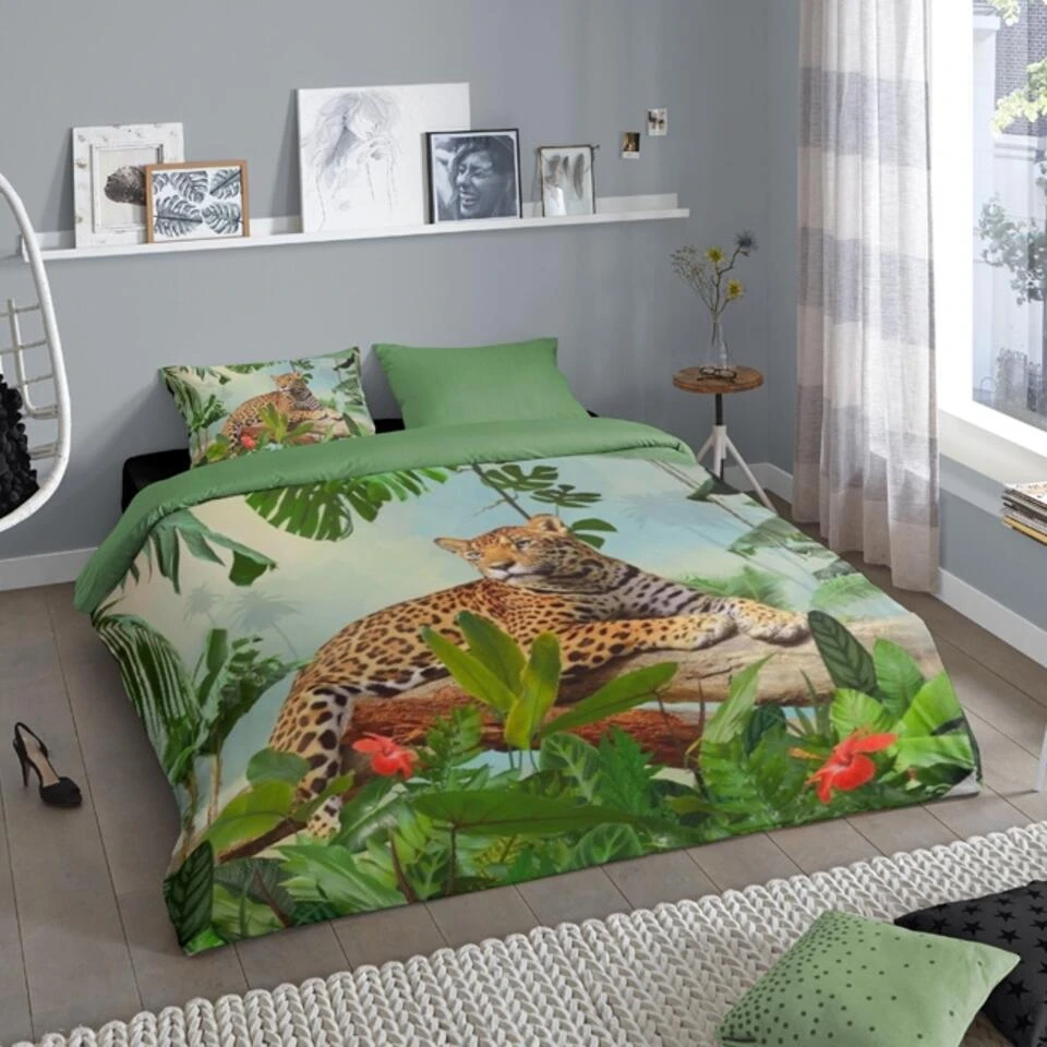 Dekbedovertrek “Jungle” van Good Morning met luipaard, in de kleur “Groen” is gemaakt van 100% Cotton. Deze kwaliteit is ademend, vocht absorberend en voelt zacht en soepel aan.