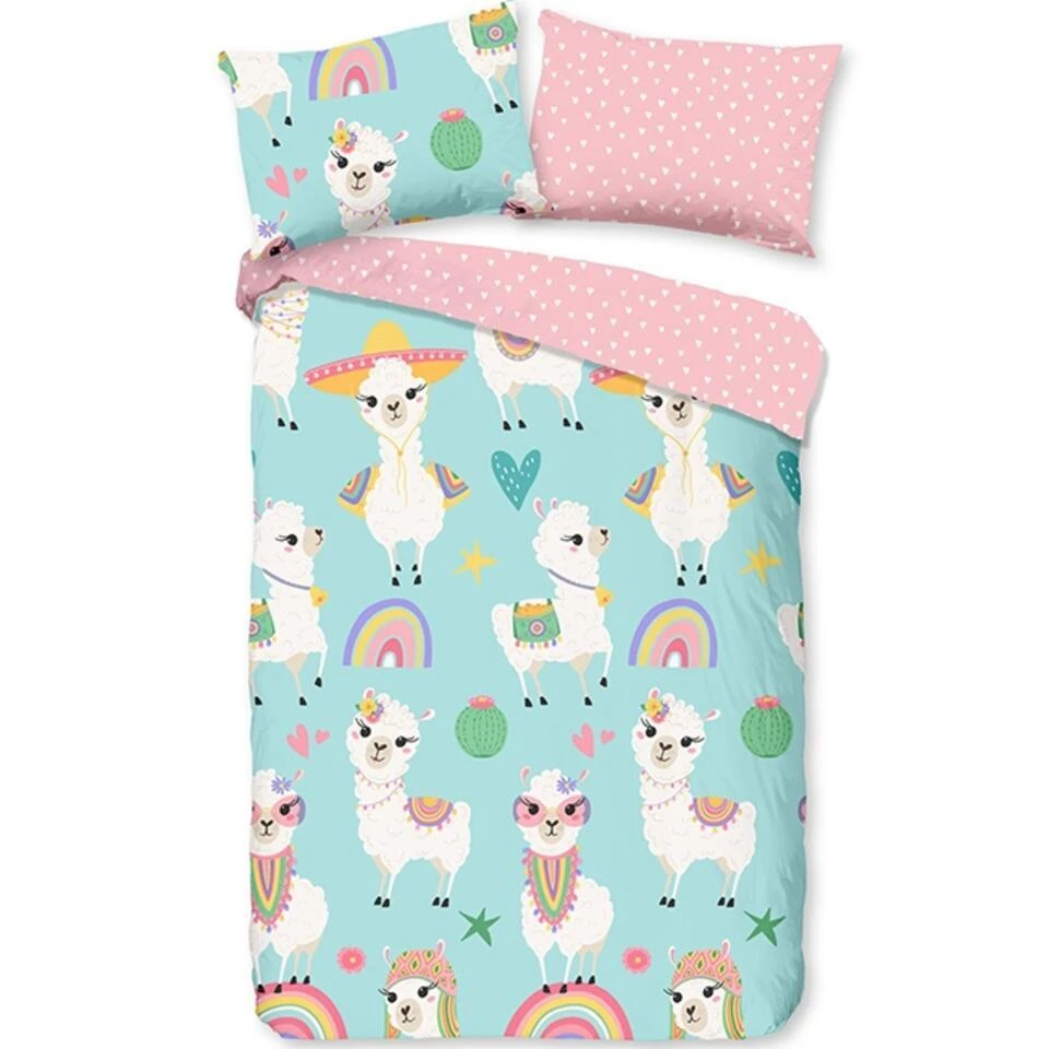 Dekbedovertrek “Lamalife” van Good Morning met alpaca’s, in de kleur “Multi” is gemaakt van 100% Cotton. Deze kwaliteit is ademend, vocht absorberend en voelt zacht en soepel aan.