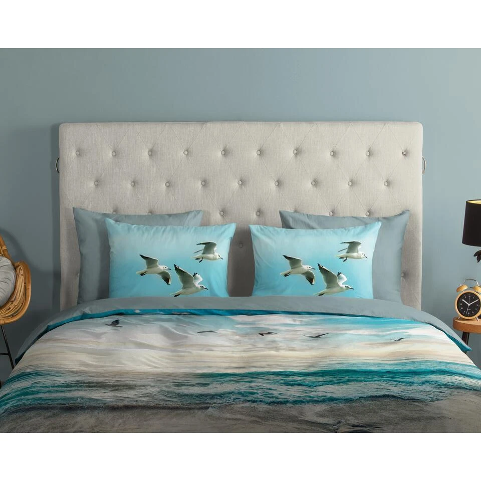 Dekbedovertrek “Brisa” van Good Morning met strand/ zee, in de kleur “Aqua” is gemaakt van 100% katoen. Deze kwaliteit is ademend, vochtabsorberend en voelt zacht en soepel aan. Dit mooie dekbedovertrek fleurt iedere slaapkamer op en is geschikt voor ieder jaargetijde. Het katoenen dekbedovertrek is heerlijk koel in de zomer en geeft warmte in de winter.