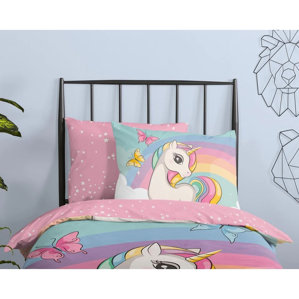 Kinderdekbedovertrek “Dash” van Good Morning met eenhoorn en regenboog, in de kleur “Multi” is gemaakt van 100% katoen. Deze kwaliteit is ademend, vochtabsorberend en voelt zacht en soepel aan. Dit leuke kinderdekbedovertrek is een toevoeging aan iedere kinderkamer en is geschikt voor ieder jaargetijde. Het katoenen dekbedovertrek is heerlijk koel in de zomer en geeft warmte in de winter.