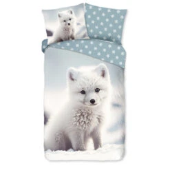 Flanellen Kinderdekbedovertrek “Toss” van Good Morning met baby poolvos, in de kleur “Wit” is gemaakt van 100% geruwde 100% katoen/flanel. Doordat het katoen licht opgeruwd is, ontstaat er een zacht laagje. Deze warme, zachte stof is ademend en vochtabsorberend. Dit leuke kinderdekbedovertrek is een toevoeging aan iedere kinderkamer en is uitermate geschikt voor de koude wintermaanden.