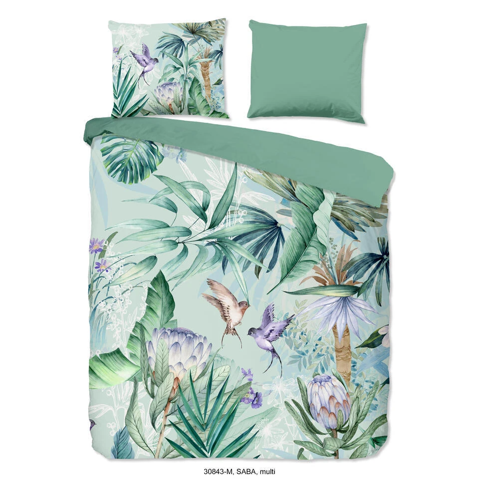 Dekbedovertrek “Saba” van Pure met jungle print, in de kleur “Multi” is gemaakt van 100% Microfiber. Het is een prettige stof, gemaakt van synthetische garen maar vergelijkbaar met het natuurlijke materiaal katoen, doordat het zacht en soepel aanvoelt. Het is geschikt voor ieder jaargetijde en door de lichte glans heeft het een luxe uitstraling. Na het wassen is deze stof snel droog en kreukt niet tot nauwelijks waardoor strijken (vrijwel) niet nodig is. Ook beschermt het tegen bacteri’n, vuil en huisstofmijt