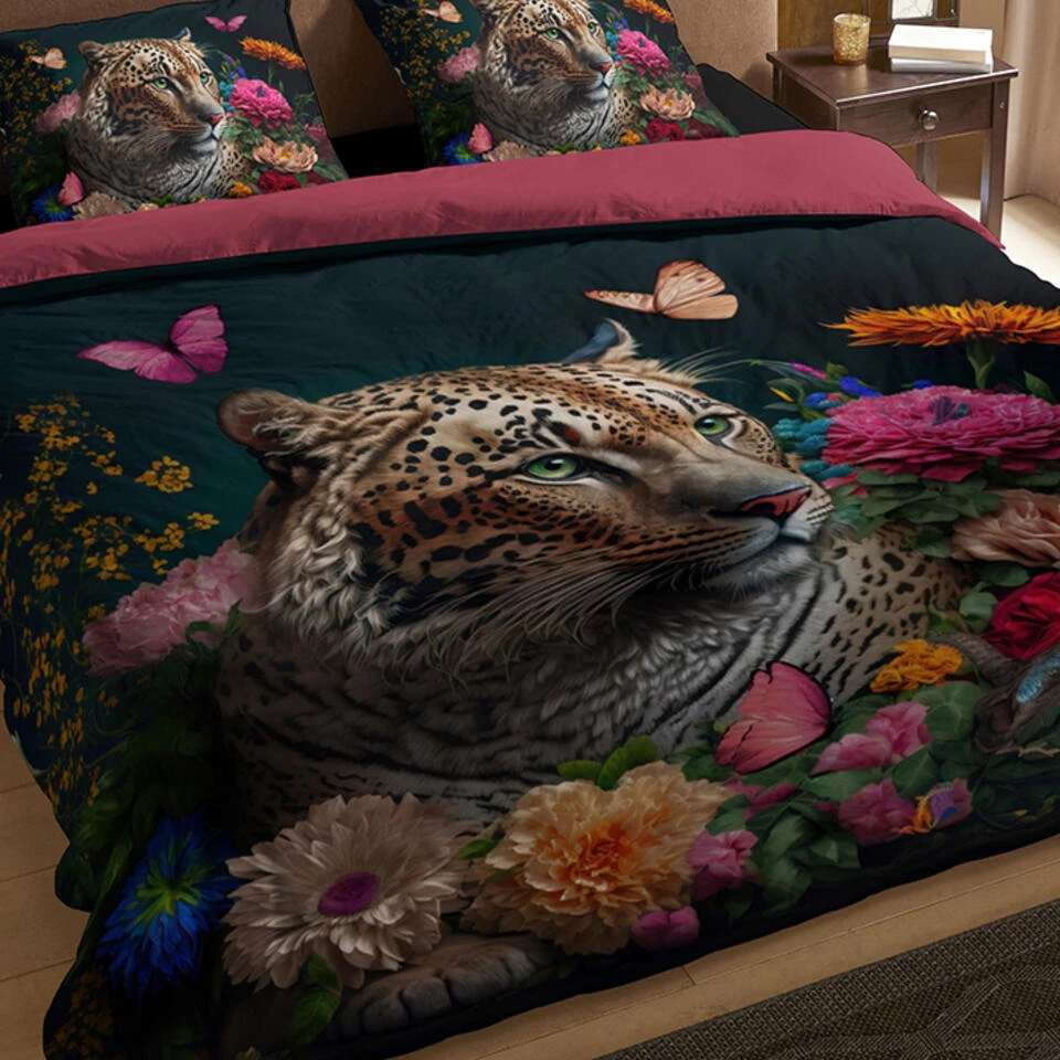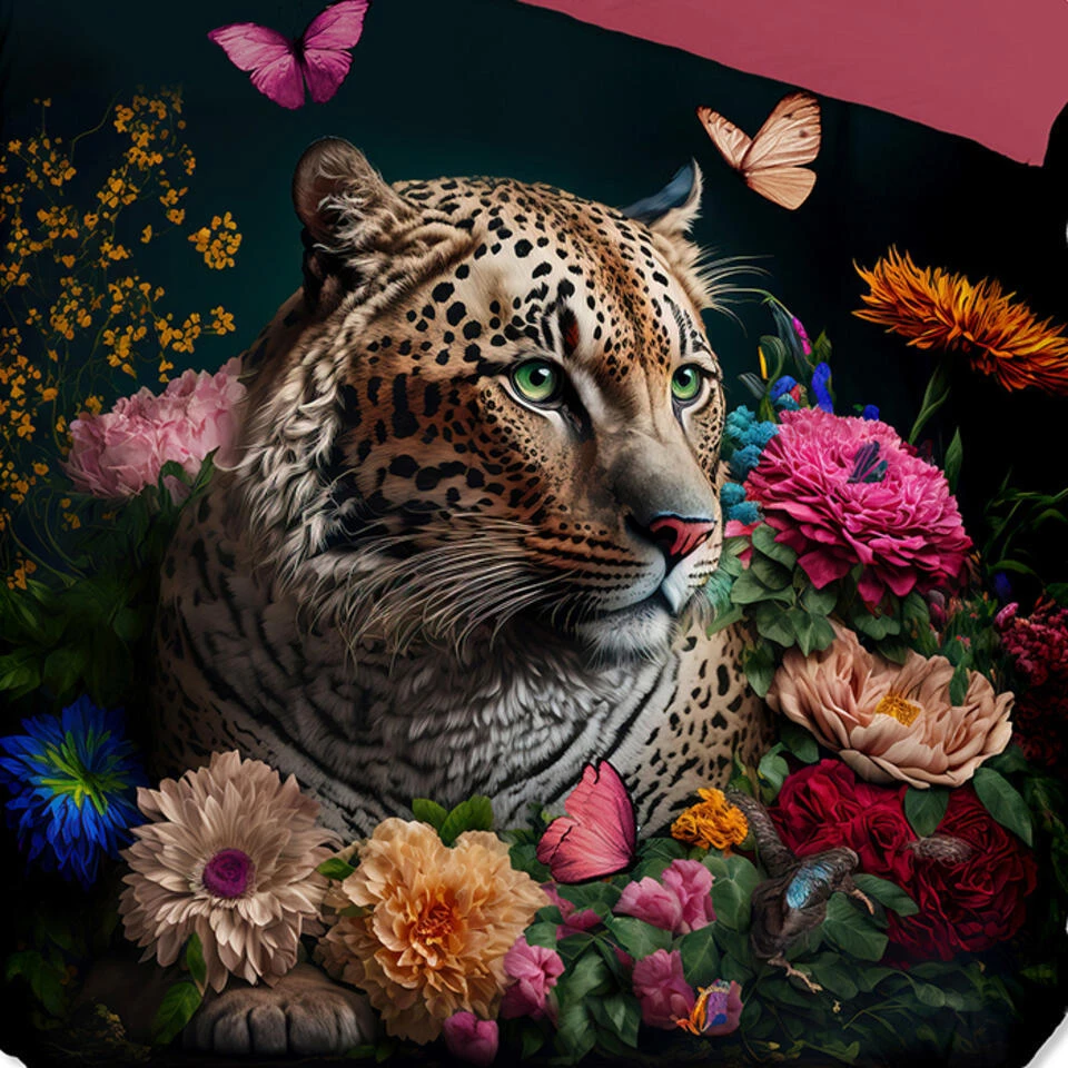 Dekbedovertrek “Borra” van Pure met luipaard met bloemen, in de kleur “Multi” is gemaakt van 100% polyester/microfiber. Het is een prettige stof, dat soepel om je heen valt en ook nog eens licht van gewicht is. Het is geschikt voor ieder jaargetijde en door de lichte glans heeft het een luxe uitstraling. Na het wassen is deze stof snel droog en kreukt niet tot nauwelijks waardoor strijken (vrijwel) niet nodig is.
