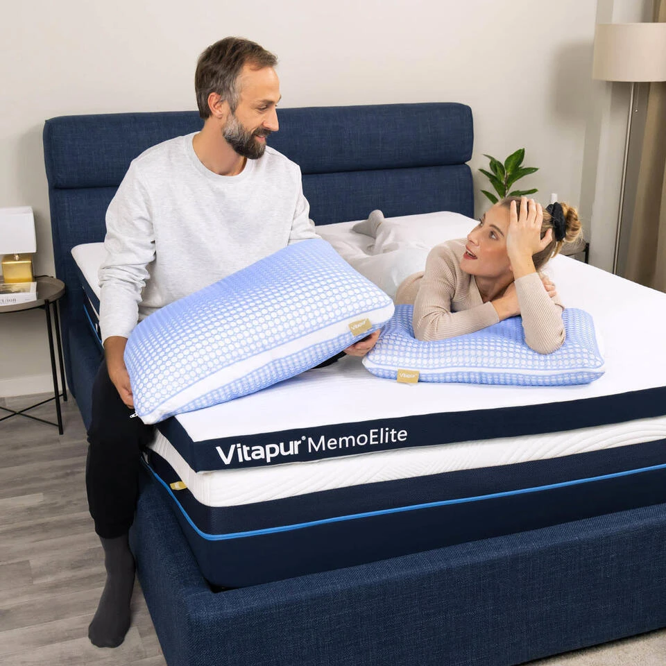 Dankzij de netstructuur is het innovatieve MemoGel-materiaal tot 50% beter ademend en biedt het tot 25% betere ondersteuning dan standaard traagschuim. Het past zich tijdens de slaap voortdurend aan je hoofdpositie aan en ontlast de nekspieren voor ultiem comfort. Het materiaal is aangenaam zacht en voelt koel aan.